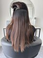 1年ほど前に縮毛矯正履歴のある方で、今回は根本の伸びた部分に縮毛矯正かけました。中間から毛先にかけて癖がない方はトリートメントと組み合わせていくと、より綺麗な状態が保てます。