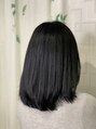 極艶なロブスタイル。ブリーチを重ね続けたホワイトベースの上から染めています。話題のリンゴ幹細胞培養液を使って滝登るごとくツヤがでます。