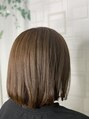 ナチュラルカラーをくすませたソフトグレージュです。ブリーチなしでも再現可能です。アロマトリートメントとリンゴ幹細胞培養液トリートメントでキメの整った収まりのいい髪質へ。