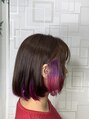 表面は優しいラベンダーブラウンで仕上げ、インナーはバックとサイドが繋がるようにそれぞれイヤリングカラーとインナーカラーをしています。ラベンダーとピンクでグラデーションを作りました。