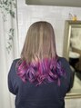 にじさんじの不破湊イメージカラーです。ブリーチベース3回以上に今回はブリーチせずにベースを活かしたオンカラーのみです。トステアカラーとXトリートメントで毛髪強度アップしています。