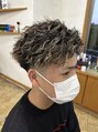 今流行りのフェードブロックのスパイキーショートにツイストスパイラルを施し、直毛のお客様ですが、アップバングしやすい動きのあるスタイルにしました。