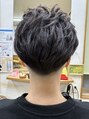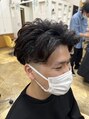 フェードカットにカルマパーマをかけフロントの立ち上がりや、サイドの流れを手ぐしでやりやすいようにしました。お客様は、直毛なので自然な動きが出てセットしやすくしました。