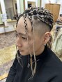 地毛の長さが7センチ!エクステを2つ折りにしてなるべく多く結んだ時に見せたいのでその方法でやってみました。お客様と「オシャレは!我慢!」を2人で言いながら、カット、ブレイズで約5時間!休憩を挟みながら終わりの見えない長旅にピリオド。カッコいい。
