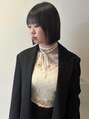 ブルーとぱつっと切りっぱなしボブの相性◎重めの前髪も雰囲気出てかわいいです!#艶カラー#くすみカラー#透明感グレージュ#福岡美容室 #天神美容室#福岡レイヤーカット#天神レイヤーカット#透明感カラー#ブルーブラック#福岡ボブ#ボブ#ネイビーブルー