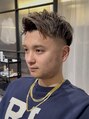 メンズヘア全流しアップバングハイライトブリーチカラーフェード