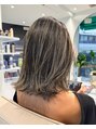 地毛ハイライトグラデーショングレージュ海外風切りっぱなしボブ