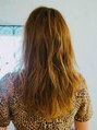胸上くらいの長さでカットしてトップにレイヤーの入ったスタイル!カラーはブリーチとハイライトを入れて、グラデーションにベージュカラーで染めて透明感をだしました!バングは眉下で斜めに切って流れやすく!なしでも似合います!