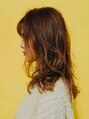 アウトラインは丸みのあるラウンドで重ためのグラデーションベースにしました。バングはシースルーっぽく作ってあります。流してもいいですが、プロダクトなどで少し束間を出すことで今っぽさがアップします!!!