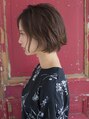 ボブスタイルに動きを出すために大きめカールのゆるめパーマをかけてます。細かい束感が出て質感も少し変わって雰囲気を変えることができます。シルエットもウエイトが変わって大人っぽいです。耳にかけるのも良いです◎