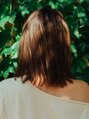 カラーリングは透明感がありつつナチュラルなグレージュで女性らしさと柔らかさを出し、カットは重たくもパサついても見えないよう量感調節を丁寧に行いました。ツヤが出るようトリートメントもしっかり行いました。