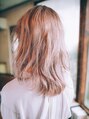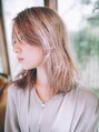 今人気のミディアムレングスのレイヤースタイルです。表面に軽くレイヤーを入れることで動きを出しやすくいています。カラーリングは一度ブリーチをして、今っぽい透明感のあるミルクティーカラーです!前髪は少し長めで動かせるようにしています。