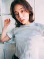 肩上の切りっぱなしボブ。ストンとした縦長シルエットを作っておくのがポイント!パーマはランダムな外ハネと内巻きミックス。トップからウェーブをつけておくとふんわり感が出て◎カラーはチコレートブラウンでツヤ感も意識☆