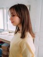 ヘアスタイルはレイヤーなど動きは出さず重ためスタイルです。2通りできる前髪はうざバングで大人っぽさ、サイドに流して綺麗めスタイルにできます!ヘアカラーはナチュラルな赤みを少なくしたブラウンカラーで柔らかい大人っぽいスタイルに☆