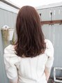 透明感のあるミルクティーカラーに薄めの前髪でより透ける透明感のあるスタイルに。色味に柔らかさがあるので可愛らしく肌馴染みが良くなります。全体は軽く、毛先は重たい質感のなりますので、扱いやすく、まとまりやすいカットです。