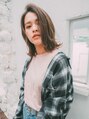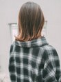 カラーはブリーチハイライトにオンカラーでアッシュベージュカラーで透け感と抜け感を出してます。レングスは外ハネすると肩につくくらいです。表面にレイヤーを入れているのでシルエットがややひし形でまとまりやすいです!!