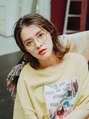 切りっぱなしのスタイルに毛先だけ外ハネにしたカジュアルなミディアムスタイル。表面の毛束を細目にチップを取り、ミックスに巻く事で柔らかさもあるスタイルとなっています。顔まわりはオールバックにして、少しだけおくれ毛を落とすのが今っぽい。