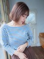 少し前下がりで丸いシルエットのあごしたのボブ。ボブだけど重くならないよう毛先を少し軽くし、顔まわりを明るくするためにバングをシースルーにしてます!暖色系のカラーを入れることでより顔まわりや雰囲気が柔らかい印象になります。