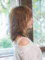 伸ばしかけの方にもおすすめなミディアムロング。全体に空間をあけるようにカットしているので重めにみえて動きのあるスタイルも作れちゃいます☆大人フェミニンなフリンジバングとミルクティーベージュのカラーで抜け感のあるスタイルに☆