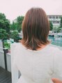 肩ラインのミディアムボブレイヤー。くびれがあるシルエットがポイントのボブスタイルなので、のぺっと重く見えず、柔らかく軽やかな質感が作れます!ファッションも選ばず合わせやすい春夏にオススメのスタイルです!