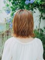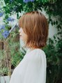 カラーリングは細いハイライトを全体的にいれて表面に立体感が出るようにしています。ベースのお色味も明るく柔らかいお色で重めのボブスタイルですが軽く見えるようにしています。少し目に掛かるくらいの前髪の長さにして可愛すぎない雰囲気に!