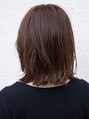 重めの質感のミディアムボブ。肩にギリギリつくくらいの長めの仕上がりです。バングはシースルーバングからサイドに繋がるように作っていて、中央だけ少し短くなっているのでおろしもかきあげもできる2WAYバングになっています。