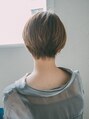 顔まわりややマッシュのハンサムショートボブです。カラーはオレンジベージュ。ブリーチ後明るめオレンジベージュをオンカラー。骨格にあわせてレイヤーや量調節をして、頭をコンパクトに見せています。生えグセもよく見て!!