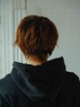 ツーブロックで耳半分くらい隠れるマッシュにカットしえりあしを少し長めに残したスタイル。カラーは少し明るめのオレンジブラウンに染めました。セットが苦手な方はパーマも一緒にしてあげると毎日にセットが楽チンです。