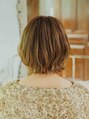 人気のレディースショートスタイル。前から見た時はボブベースですがバックはタイトにめりはりをつけました。カラーは女性らしく透明感のあるベージュ系で明るめにしてます。バングは薄く作りおでこの出方に拘りました。