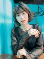 切りっぱなしボブのアレンジ。似合わせやすいアゴ下のボブライン。タイトなシルエットになるように毛量を調整しています。バングは薄めで細い束感を作れるようにしています。抜け感を作ったお手入れ簡単なボブスタイルです。