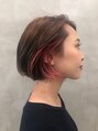 脱マンネリの黒髮ボブも、ブリーチせずに柔らかくトーンアップして耳上のみポイントブリーチで遊びを出して。オンカラーはピンクコーラルをオン。
