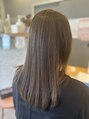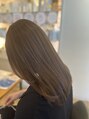 グレイカラーをなじませるハイライトをたっぷり仕込んだアッシュベージュカラー。ツヤ感とソフトなイメージが引き立ちます。
