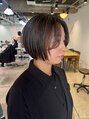 全体のお色はオリーブグレージュ。落ち着いたトーンにブリーチを使わずにハイライトを作って立体感を出しています。ストレートにしっとりオイルをつけて耳にかけても◎少し長めに作った前髪がポイントとなり可愛いです。
