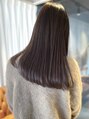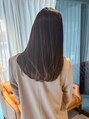 赤みも黄色みもない、ブラウンカラーにトステアトリートメントでうる艶髪へ。カットラインもまとまりのあるローレイヤーカットで。