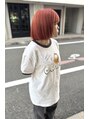 厚みのあるミニボブに、顔まわりだけ軽くレイヤーを入れたスタイル。程よい動きと抜け感がでます◎ブリーチ一回で作る鮮やかなオレンジレッドカラーがツヤを引き立て、光に当たるたびに柔らかく発色。コンパクトなシルエットの中に、遊び心と個性を◎