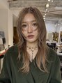 ロングレイヤーカット/ブリーチダブルカラー/オリーブベージュ