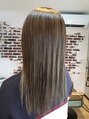 全体に少し太めにブリーチでハイライト、上から8トーンのシルバーアッシュでオンカラー。ハイライトで根元が伸びても目立ちにくく持ちが良くオススメです!写真は当日なので多少馴染んでいますが、一週間程度で徐々にハッキリ出てきます。