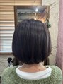 コロンと丸いボブよりのショートボブ。透明感のあるイルミナカラーでより、艶感がアップしたデザイン。石橋Instagram rosso_ishibashi__