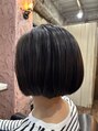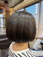 アゴラインギリギリで仕上げるミニボブ。首の細く長くスッキリした感じが際立つスタイル。小顔に見せたい方にもオススメなスタイルの1つ。石橋Instagram rosso_ishibashi__