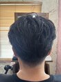 以前のパーマを生かしたスタイル。サイドと襟足はスッキリさせた、ビジネスマンスタイル。石橋Instagram rosso_ishibashi__