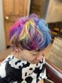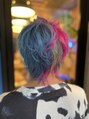 メンズ版ユニコーンカラー☆バジオットオリジナル調合のスカイブルーとガッツリ目立つユニコーンカラーのコラボです。ベースカットは人気のマッシュウルフベース。ブリーチは必須ですのでお問い合わせください♪