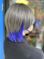 じわじわ人気の高まっているマッシュウルフにインナーカラーです☆ブリーチ2回にシルバーアッシュとコバルトブルー♪#ブリーチ#ハイトーンカラー#ダブルカラー#ケアブリーチ#ハイライト#インナーカラー#髪質改善#バレイヤージュ#韓国#韓国風
