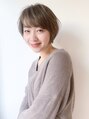 シルエット綺麗なショートボブのスタイル。ひし形の黄金比バランスで頭の形も良く、お顔も小さくなるよう見せていきます。また、表面にフワッと浮くような質感もいれて可愛らしさをキープしています。カラーは明るいミルクティーベージュで軽やかに◎