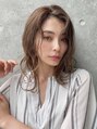 透明感のあるやわらかい印象のグレージュカラーと、波巻きセットで全体的に動きを出した色っぽ大人ヘア♪前髪は長く、かきあげスタイルですので、更に大人で女性らしい雰囲気でとってもかわいいです☆