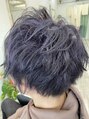 ブリーチ後アディクシーのブルーとパープルをON!!暗めのカラーで色味をしっかりいれました。室内や外の光によって色味がグレーやパープルに見えます。