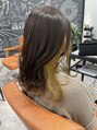 インナー(イヤリング)の少ない幅をブリーチして黄色をONコントラストが効きすぎないように、全体は柔らかいブラウン