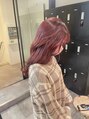 ブリーチ1回ブリーチorブリーチ無しのダブルカラーで可能◎PINK多めにブラウンをMIXしツヤがたっぷりでるピンクブラウン♪カットは長さを変えずに毛量のみと巻きやすいようにトップに少しレイヤーを☆