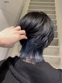 ブリーチ1回~襟足とお顔周りをブリーチ☆青をオンカラー色落ちは緑にならず可愛く♪ダブルカラー/ブリーチ/ハイトーン/インナーカラー/ハイライト/バレイヤージュ /人気/ケアブリーチ/韓国/ヘッドスパ/名古屋/名駅/ 学割U24 /イヤリングカラー/イルミナ