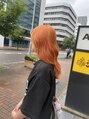 ブリーチ1回~ブリーチ回数少なくてもできるオレンジヘア!夏にピッタリのデザイン◎肌なじみいいようにオレンジと少しpinkをmix!毛髪再生のトリートメントで広がりやすい髪質もしっかり抑えて◎前髪を流しやすいようにカット◎