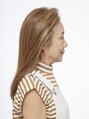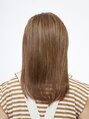 白髪が伸びてきても目立ちにくい明るめベージュブラウンで、肌のトーンもアップします。前髪の分け目が出ないようにすることでトップに高さがでます!